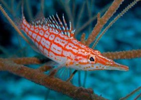 Troviamo poi anche banchi di pesci pipistrello, pesci trombetta, barracuda, tonni, gamberetti mantide, e pesci