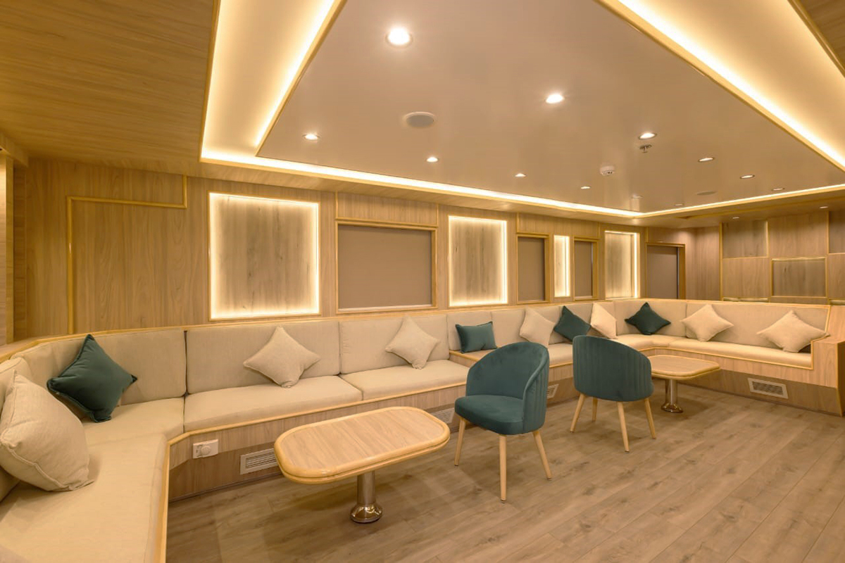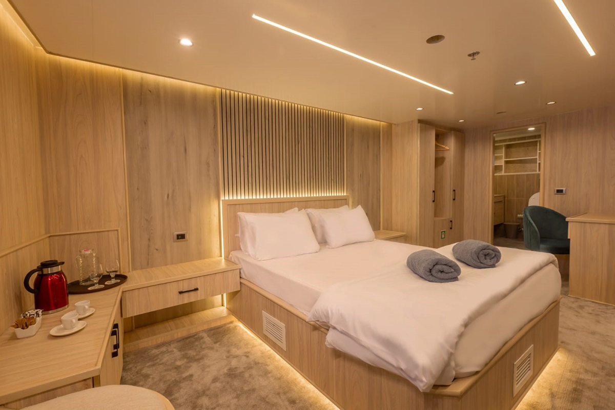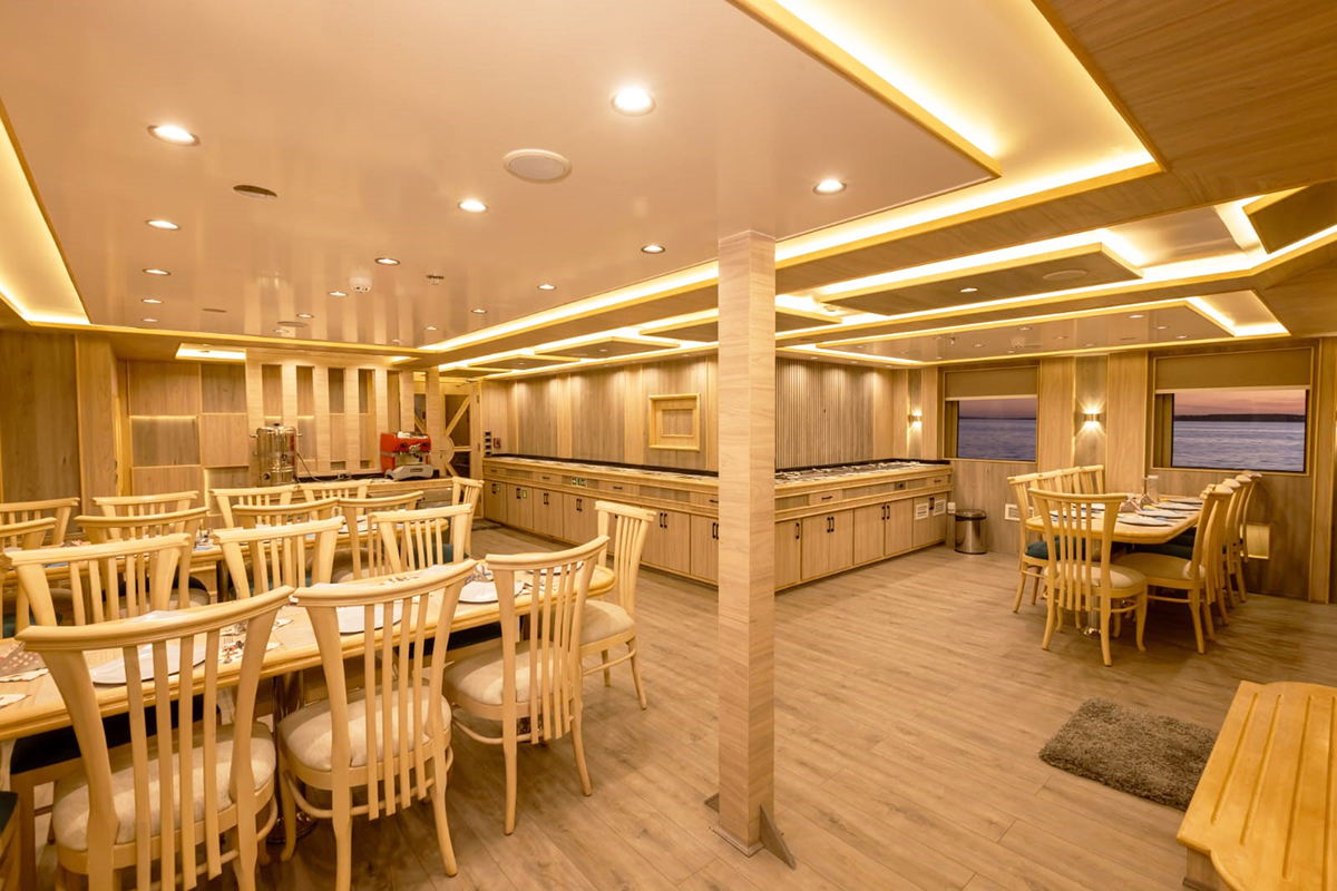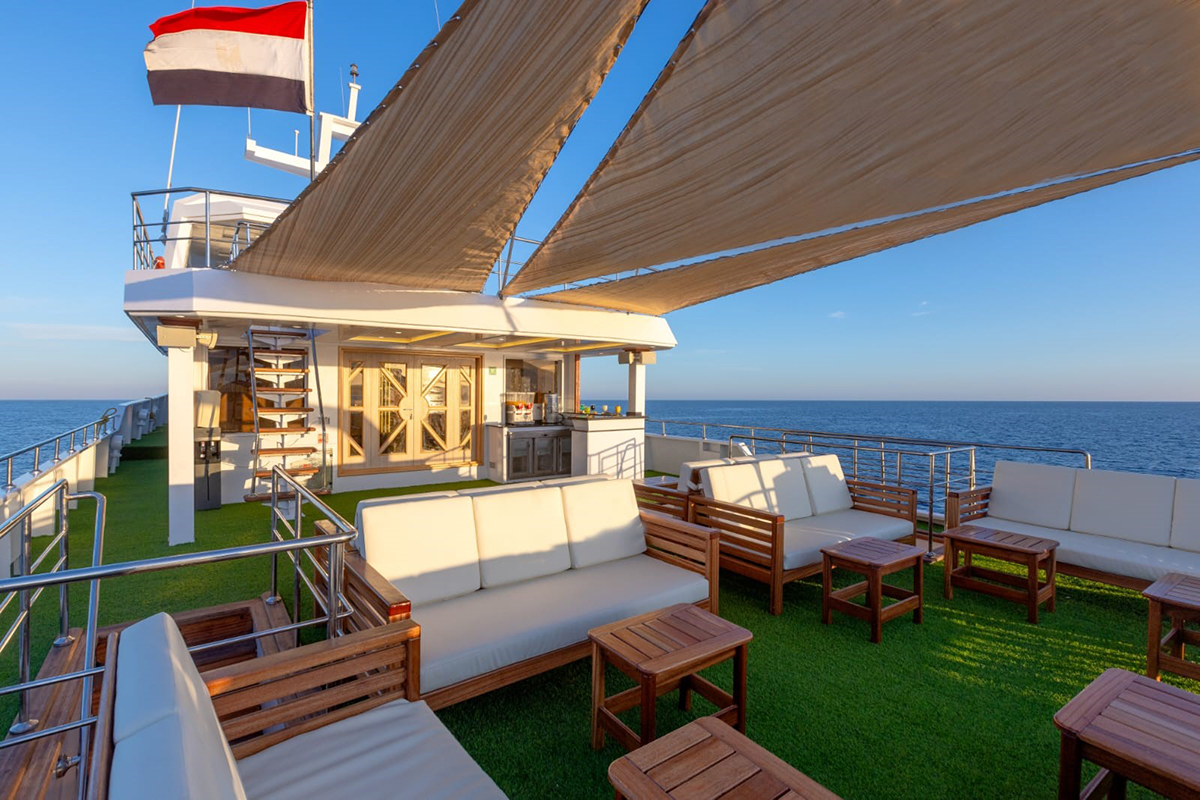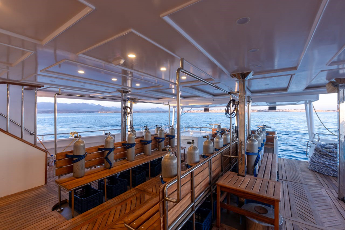 Per la navigazione abbiamo scelto la nuovissima Saudi Pioneer varata lo scorso mese di febbraio: imbarcazione dotata di cabine lussuose e confortevoli, di ampi spazi per le attività di gruppo inculsa una strategica area TV per le lezioni serali, e, naturalmente, di un'area diving a poppa capace di offrire a tutti i giusti e comodi spazi anche per le attrezzature fotografiche.